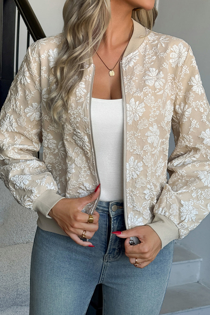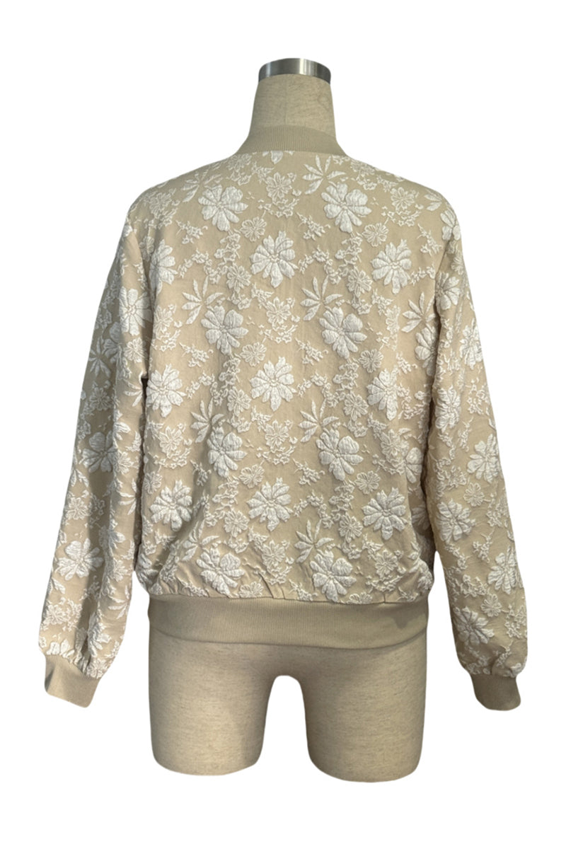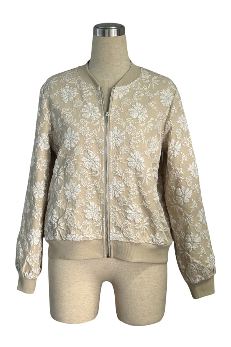 Your new statement jacket features intricate floral pattern for a chic touch. Perfectly elevates any outfit, seamlessly blending casual and elegant styles.