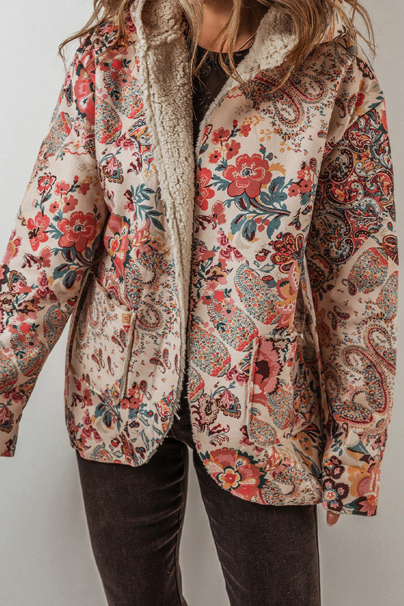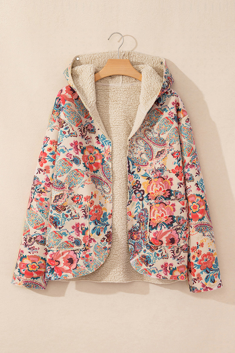 Your new go-to outerwear piece features a vibrant floral pattern and cozy hood. Effortlessly stylish for any occasion, ensuring both comfort and elegance.
