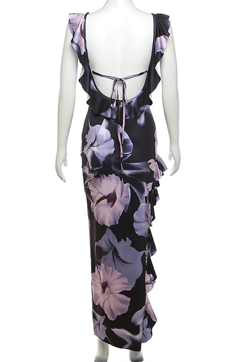 Your new captivating evening gown features a deep V-neck and elegant flowy silhouette. Perfect for formal gatherings, ensuring you make a lasting impression.