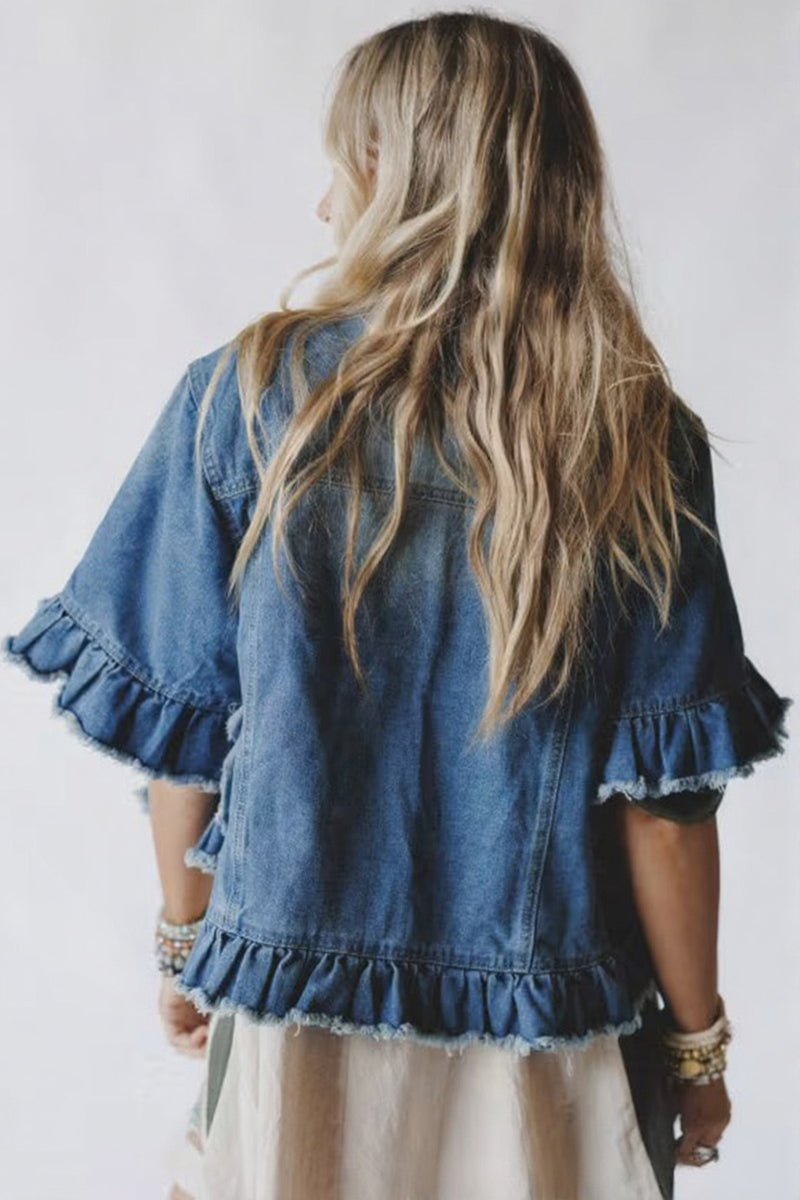 • Frayed Hem Denim Jacket