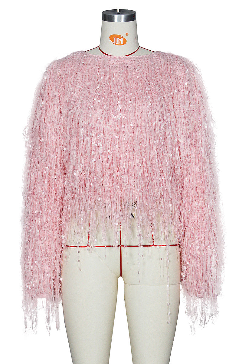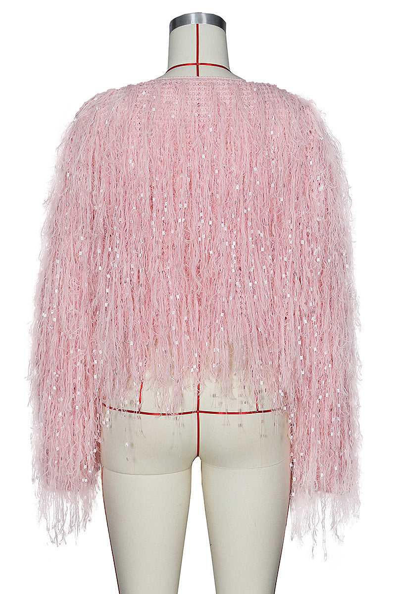 Your new statement piece features unique fringe detailing and an effortless chic silhouette. Easily elevates any casual look, perfect for making a fashion-forward statement.