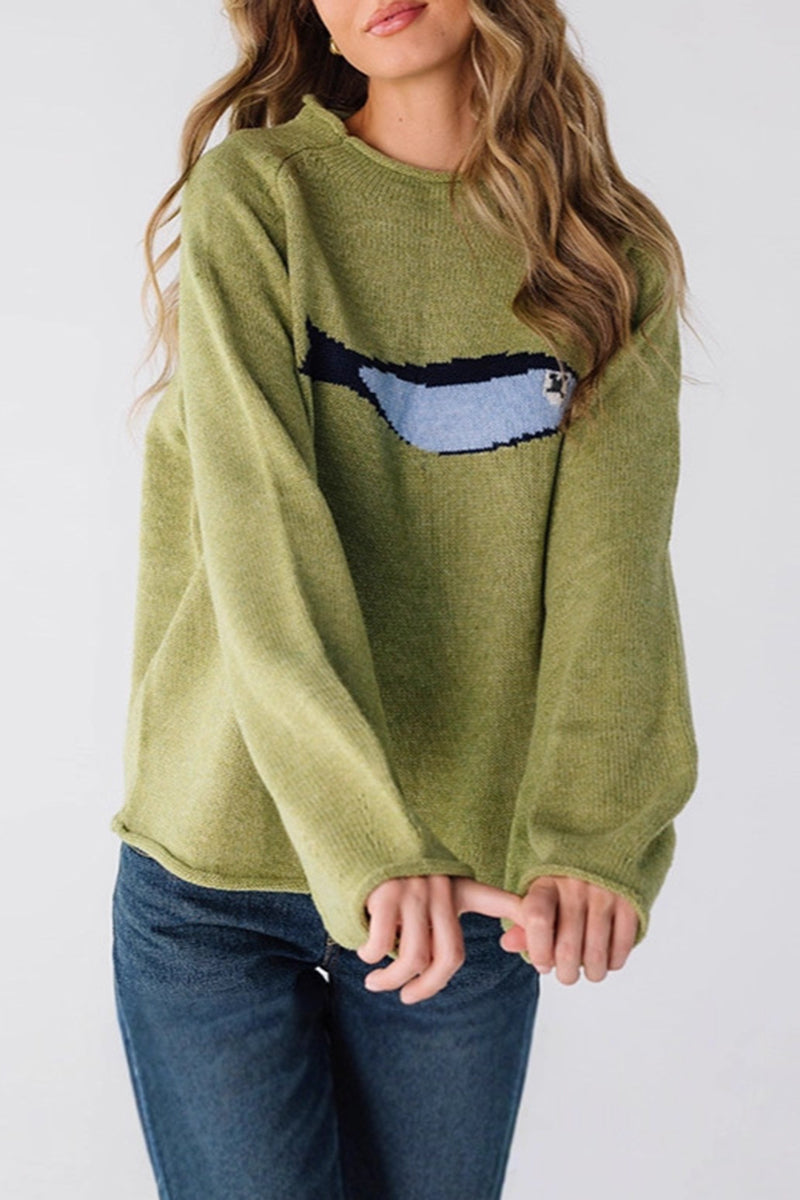 Your new go-to sweater features a playful fish pattern and relaxed silhouette. Designed for comfort and style, it's perfect for casual outings and cozy evenings.