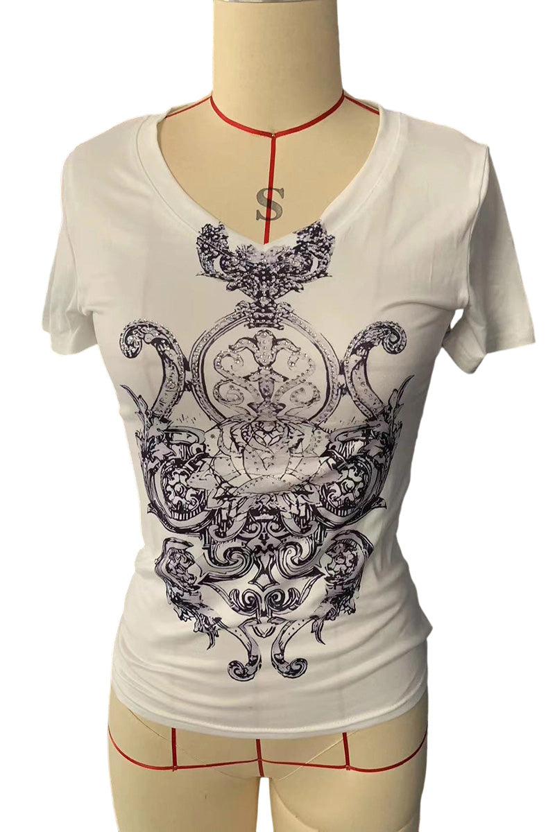 Graphic Print V-Neck T-Shirt