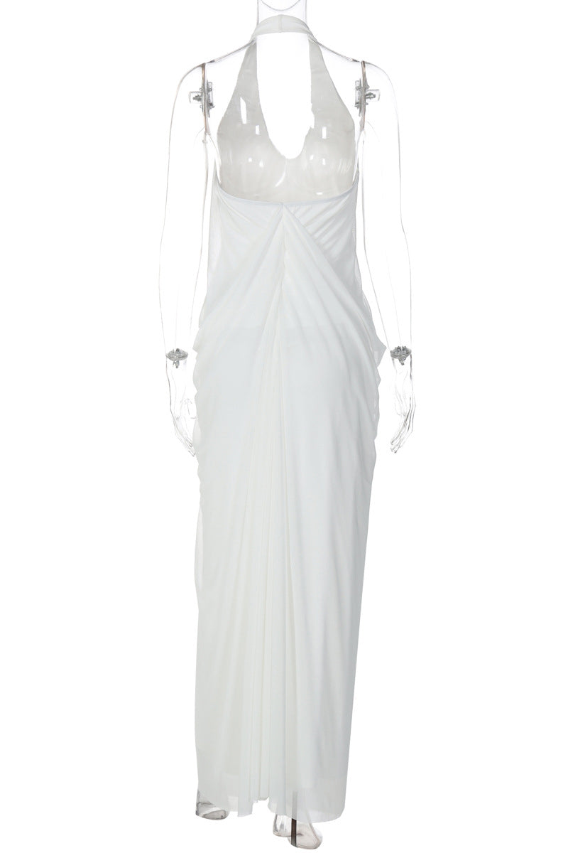 Your new casual dress features a stylish halter neckline and elegant draped design. Effortlessly transitions from relaxed days to evening gatherings, making it perfect for multiple occasions.