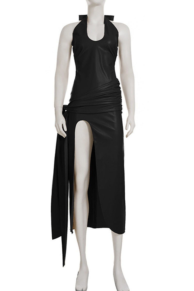 Your new go-to dress features a chic halter-neck and elegant draped design. Effortlessly enhances your style for any casual occasion.