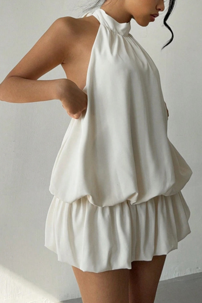Your new casual dress offers a free-spirited halter neck design and relaxed fit silhouette. Perfect for laid-back days and effortless style transitions.