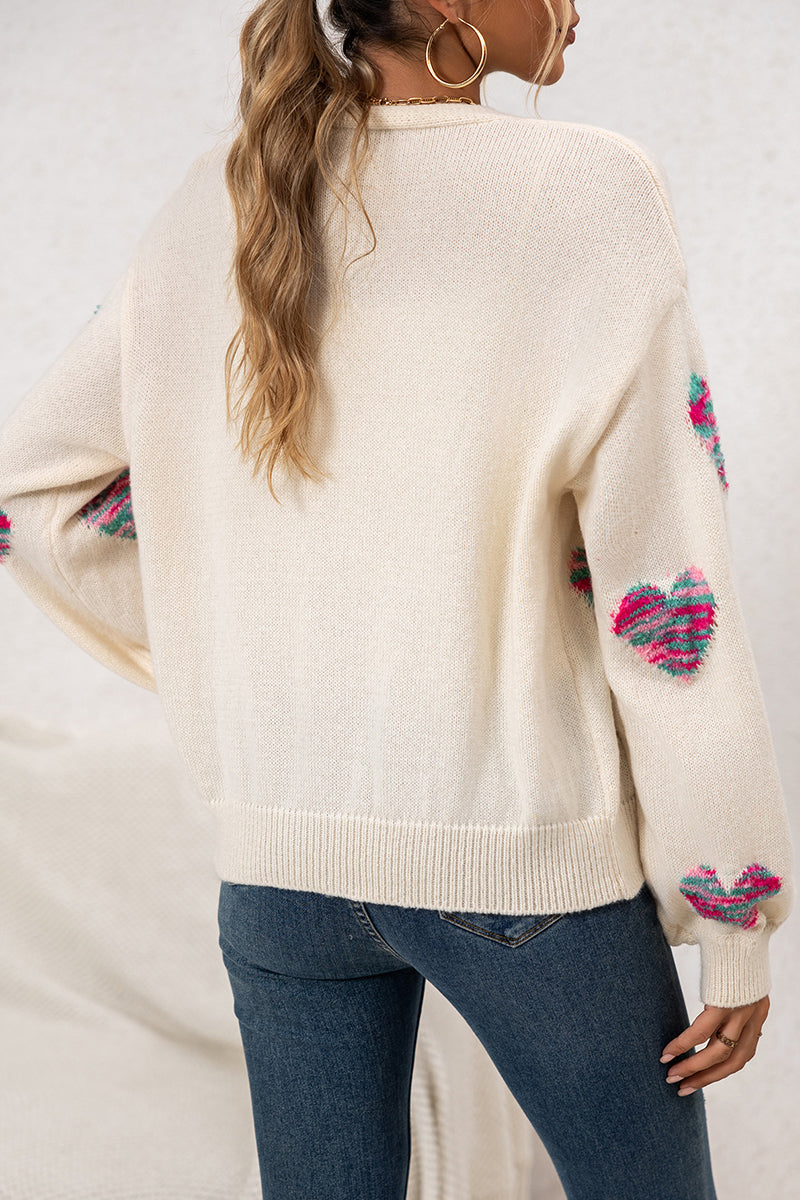 Your new whimsical cardigan features charming heart patterns and a versatile button-front design. Perfect for layering, it effortlessly enhances any casual or chic ensemble.