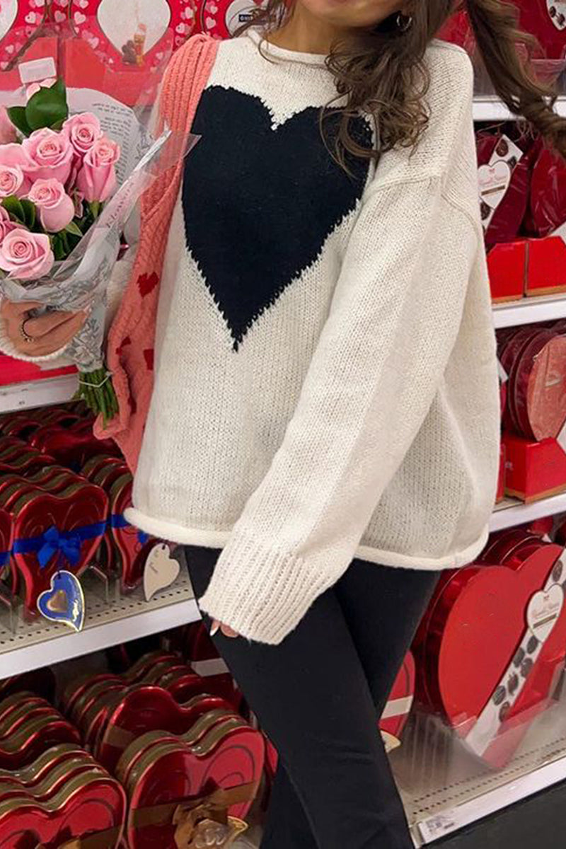 Heart-Patterned Relaxed Sweater