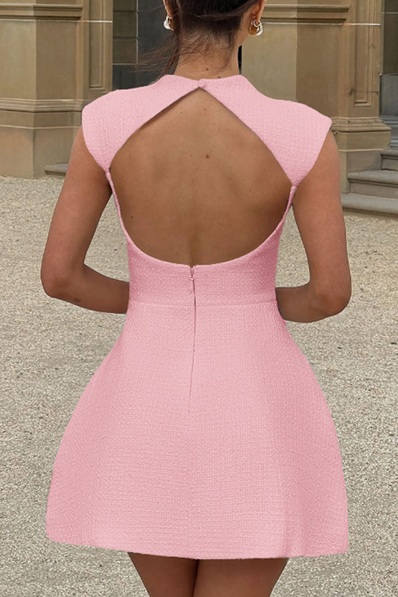 Your new dress presents a high neckline with pockets and a tailored silhouette. Perfect for a polished yet casual mini style.