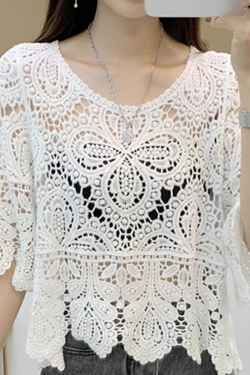 Your new cover-up top is designed with an elegant lace overlay pattern. Effortlessly adds sophistication to any casual or formal occasion.