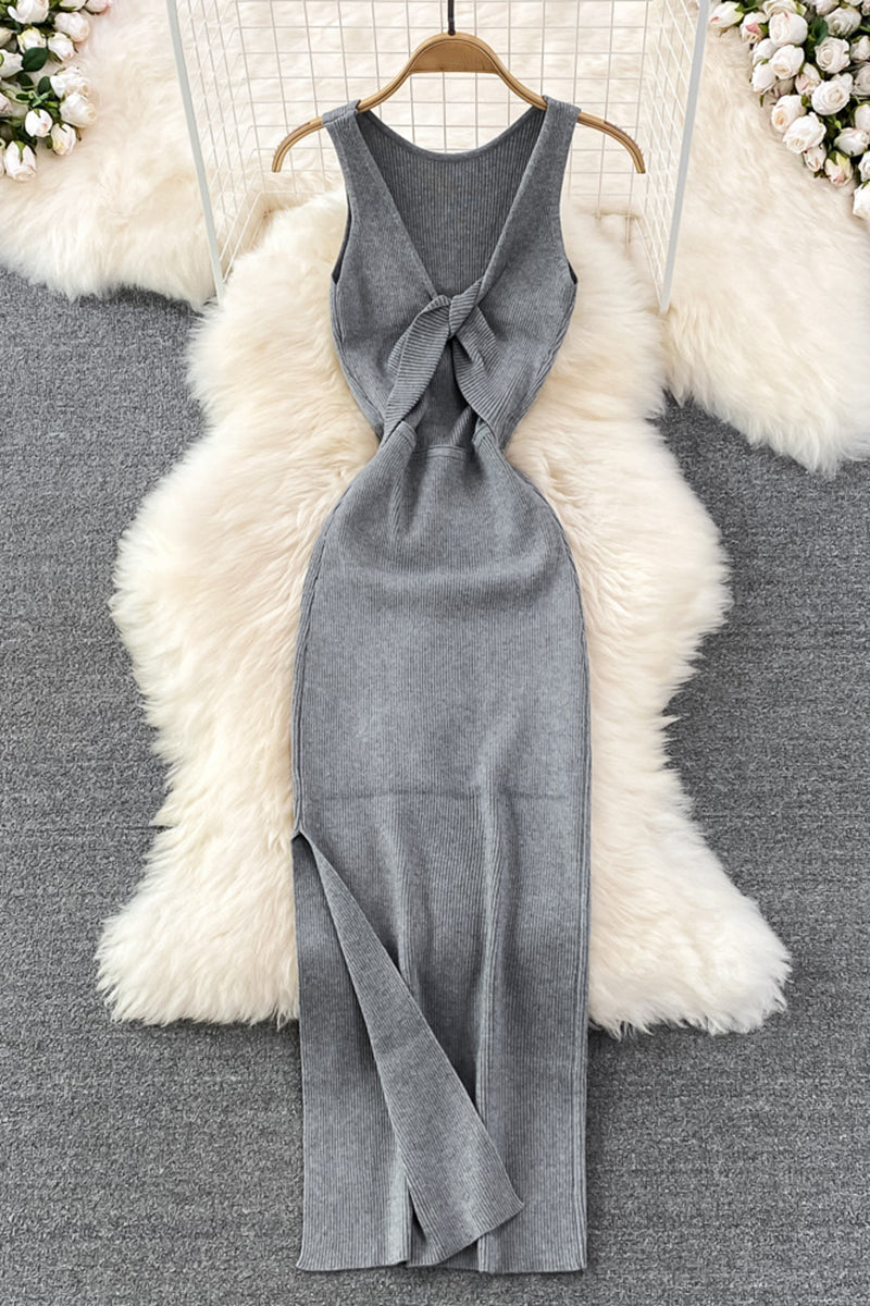 Your new dress includes a knot-front detail and ribbed texture. A sleek silhouette made for effortless everyday wear.
