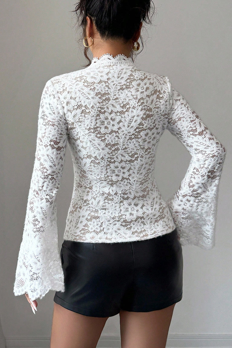 Your new statement blouse features elegant lace details and bell sleeves. Effortlessly elevates any outfit, ensuring you'll stand out at any event.