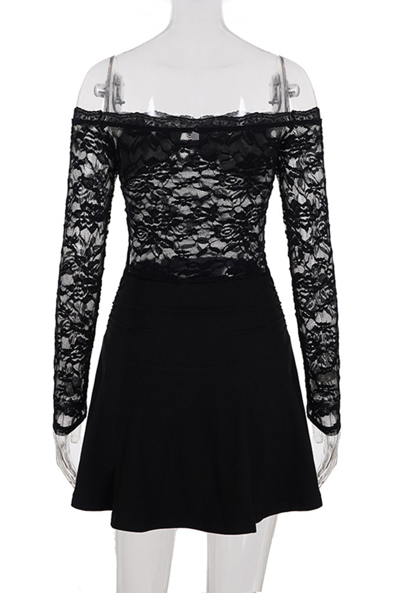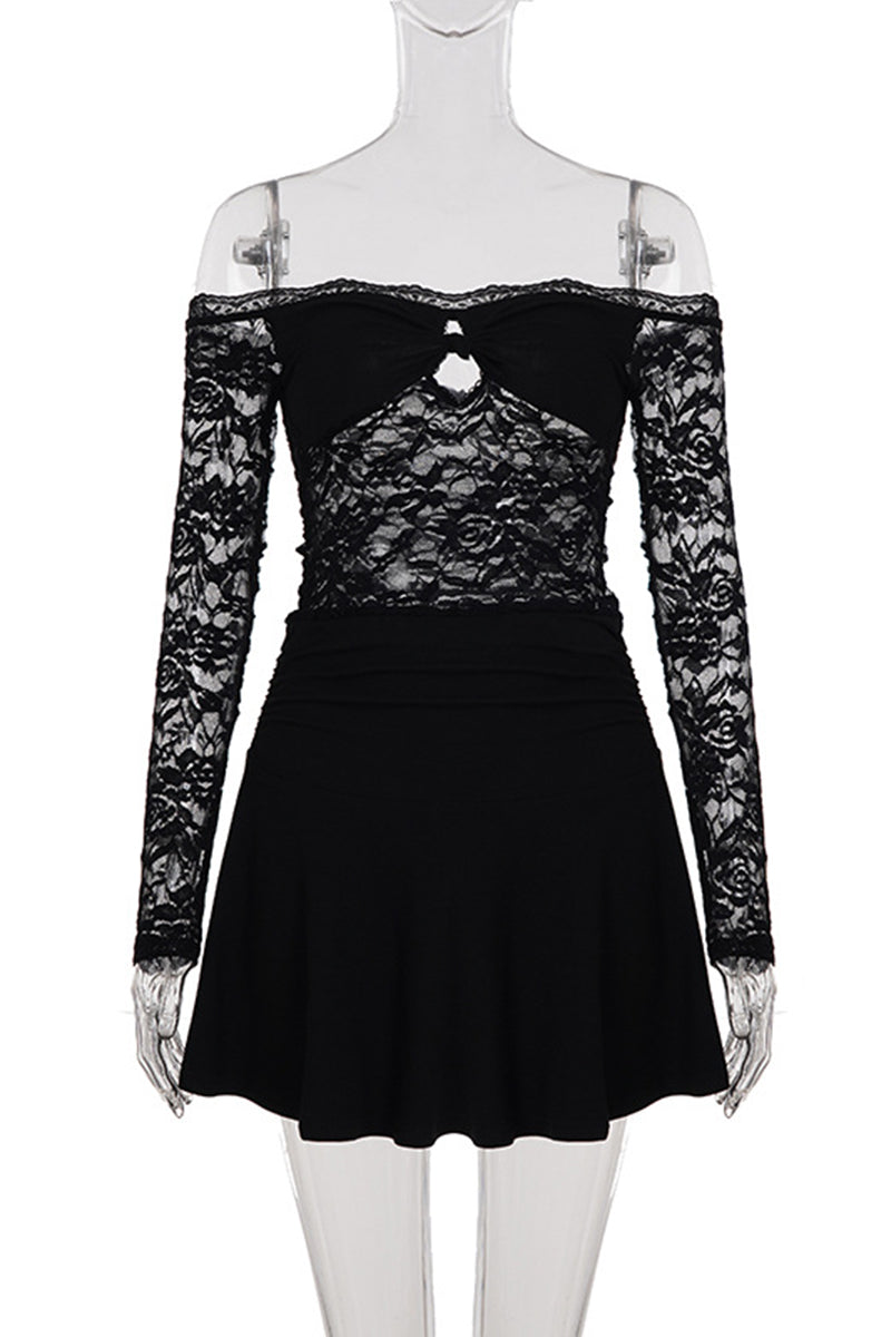 Your new charming dress features an elegant off-shoulder design with delicate lace inserts. Effortlessly stylish for day-to-night wear, perfect for a variety of casual occasions.