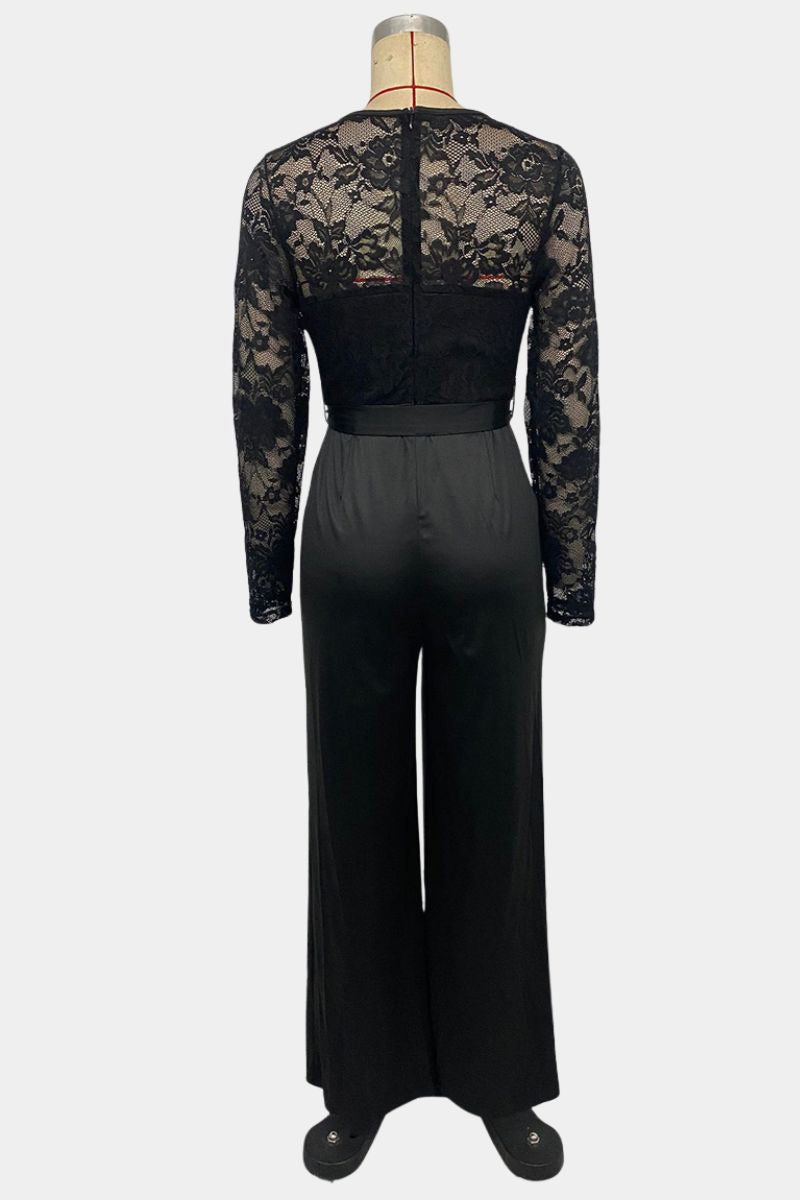 Your new elegant jumpsuit features intricate lace detailing and a stylish belted waist. Perfect for evening events, it brings sophistication to any occasion.
