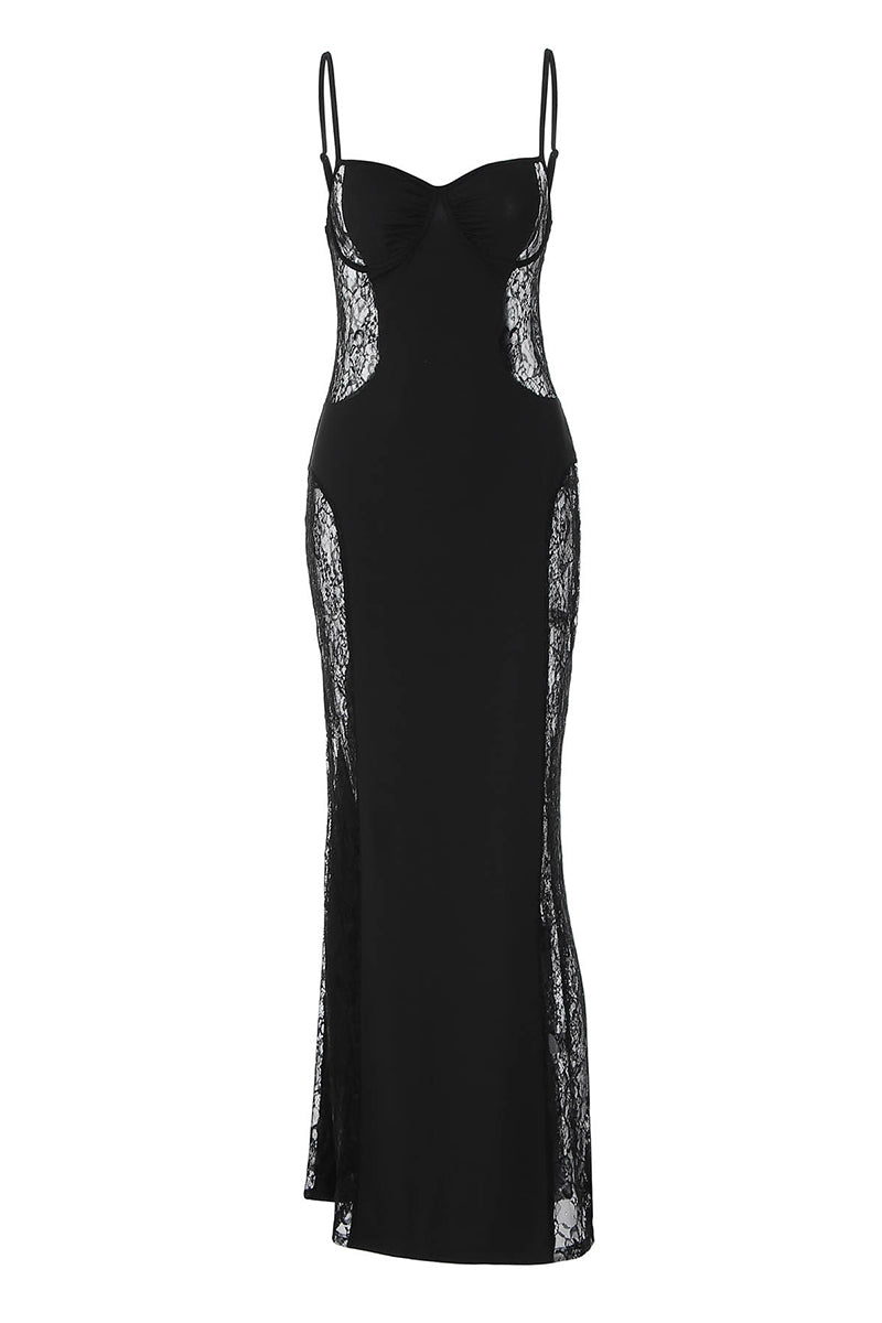 Your new elegant dress features chic lace panels and a stunning silhouette. Effortlessly elevates your evening look, perfect for glamorous occasions.