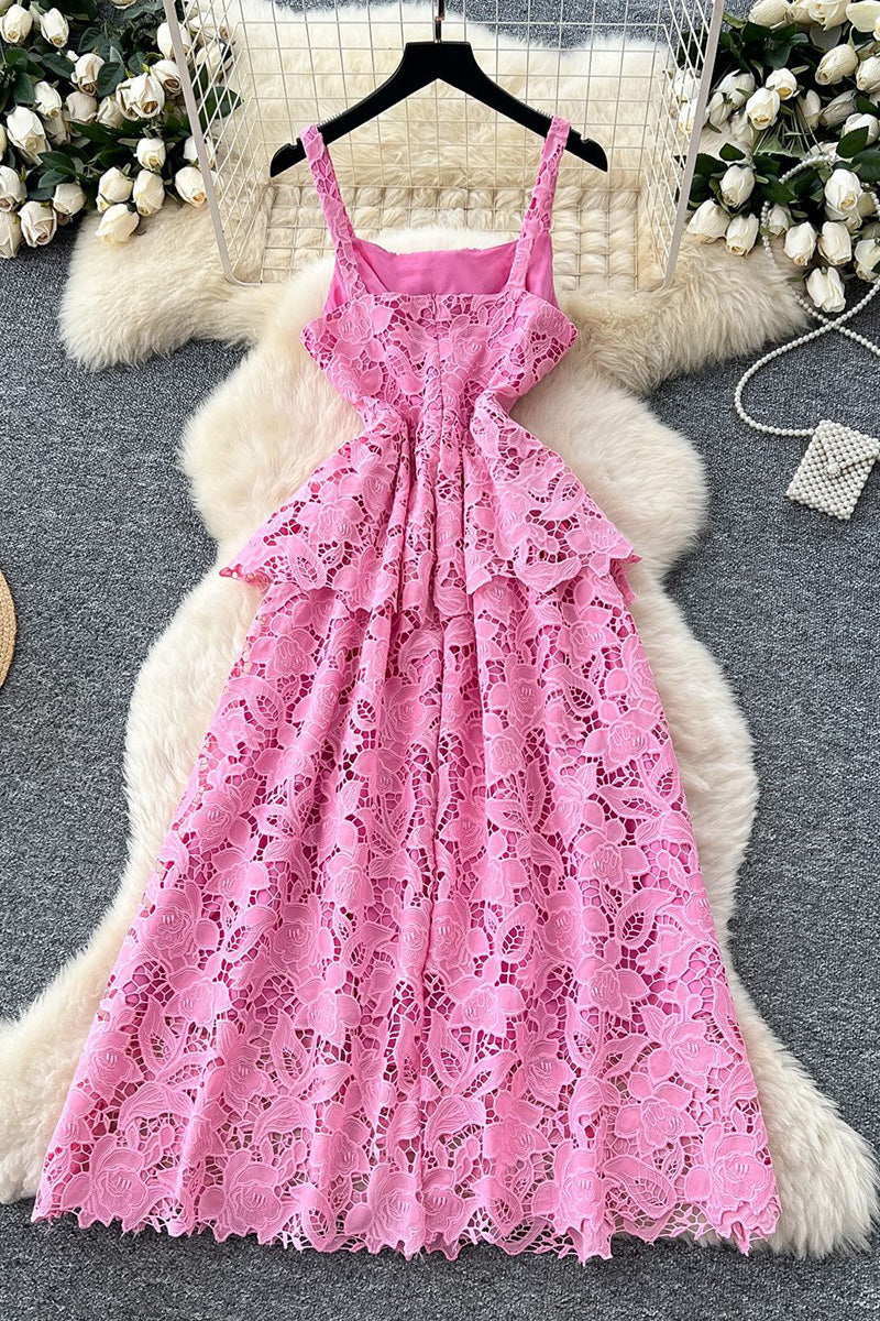 Your new sundress includes intricate lace patterns and a ruffled bodice. Designed for graceful style in warmer seasons.