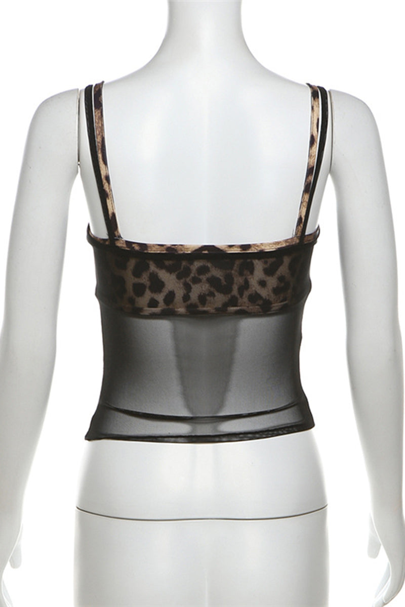 Your new go-to tank top features a chic mesh design and bold leopard pattern. Effortlessly elevates any outfit, making it perfect for various occasions.