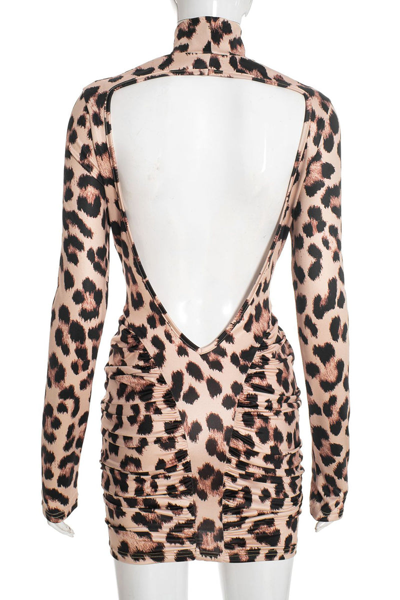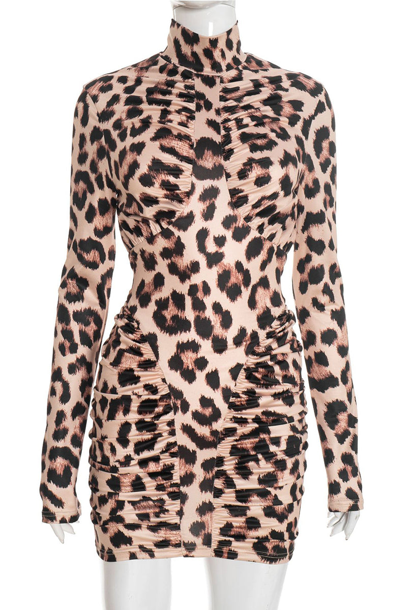 Your new casual dress combines bold animal print with elegant ruched details. Perfectly versatile for day outings and evening gatherings alike.