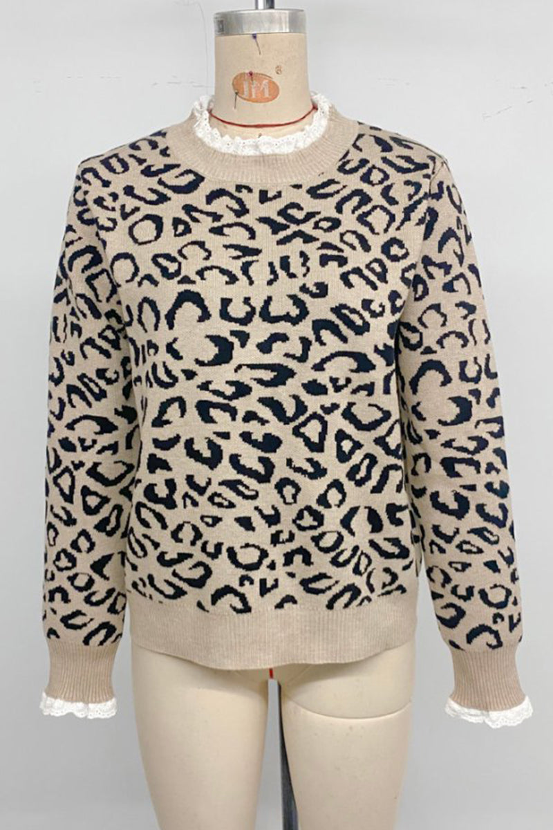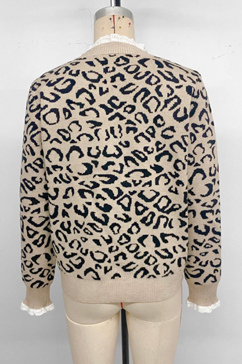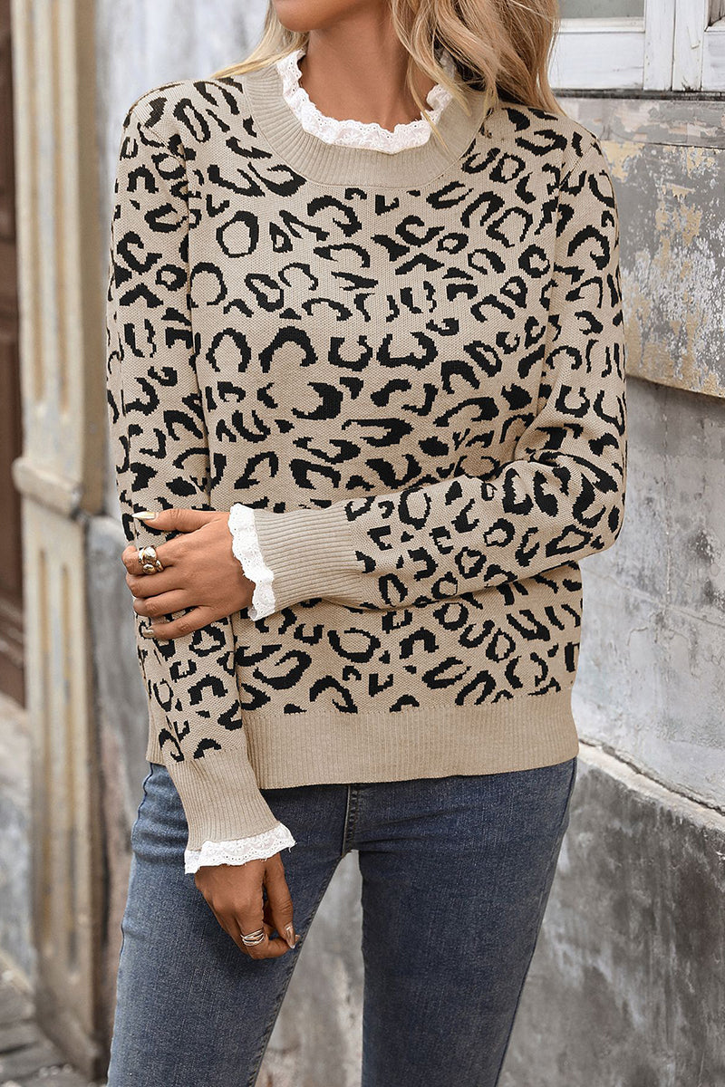 Your new favorite sweater features a bold leopard pattern and charming ruffled cuffs. Perfect for layering, this versatile piece adds a touch of elegance to any look.
