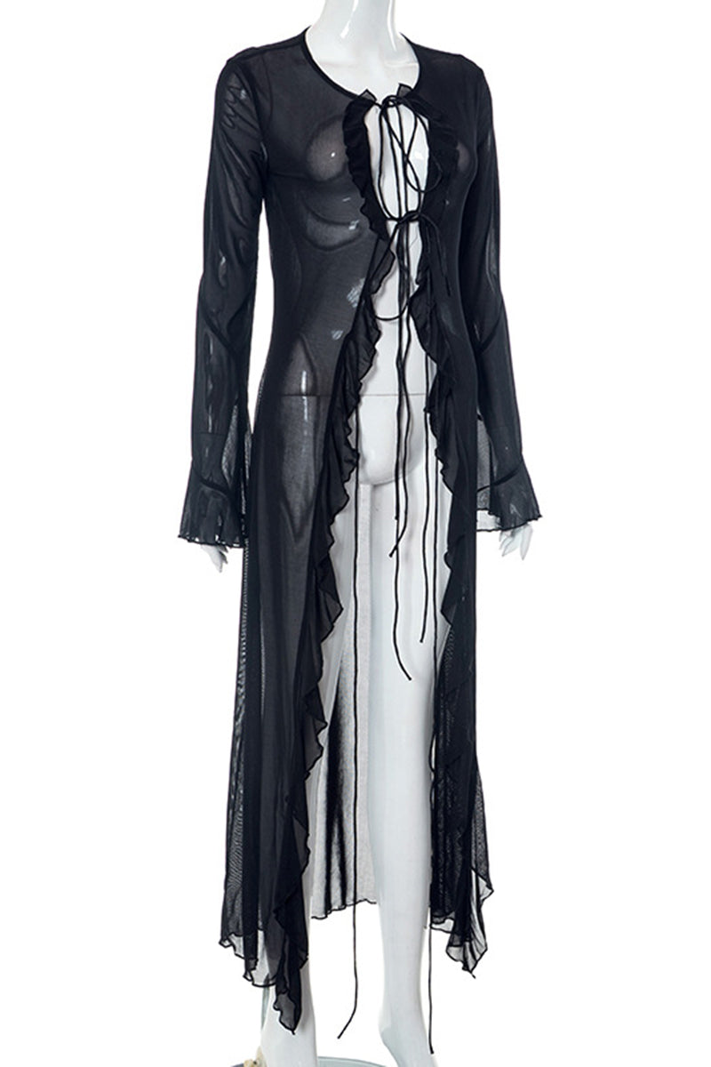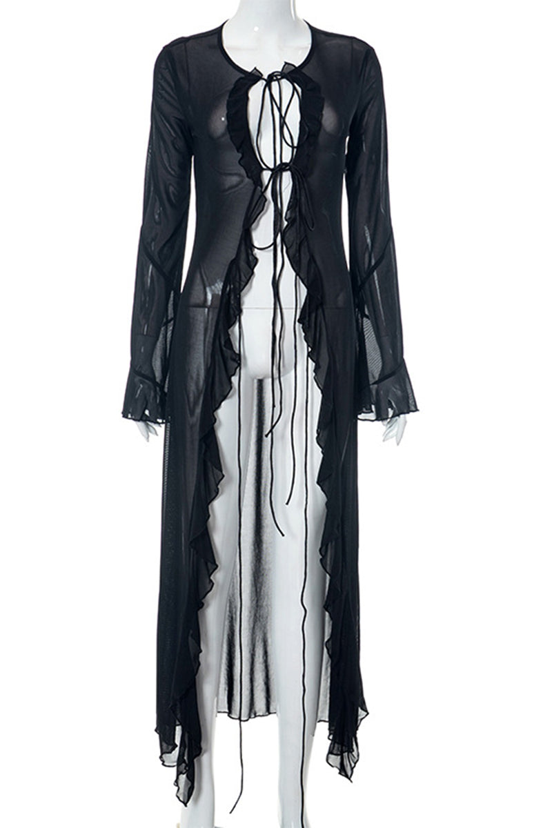 • Long-Sleeve Ruffled Casual Dress