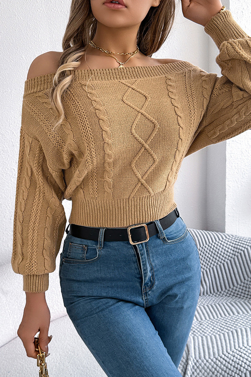 Your new wardrobe staple showcases an elegant off-shoulder design with intricate cable knit detailing. Perfect for layering, it effortlessly complements both casual and chic ensembles.