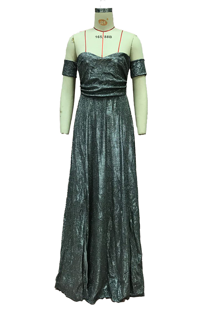 Your new show-stopping evening dress boasts an elegant off-shoulder neckline. Perfect for capturing attention at memorable night events.