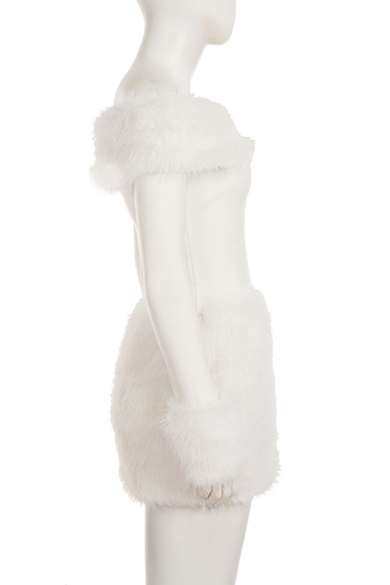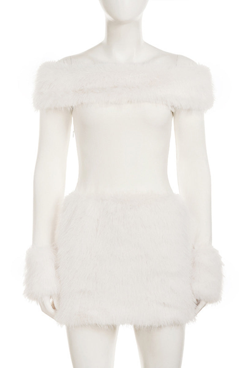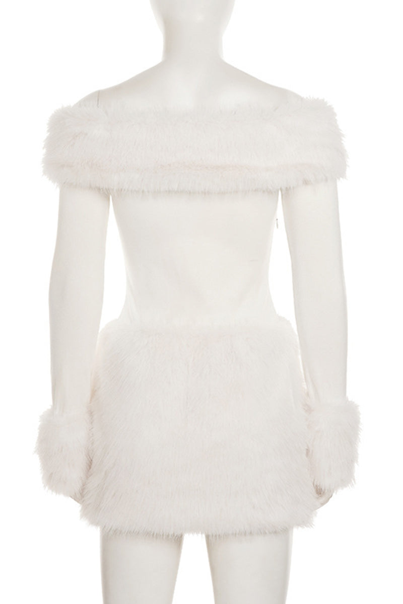 • Off-Shoulder Faux Fur Mini Dress