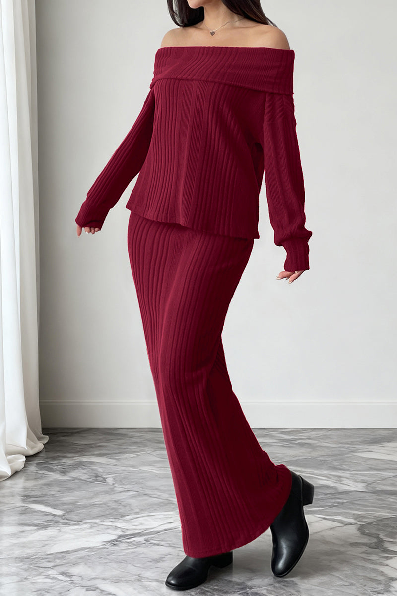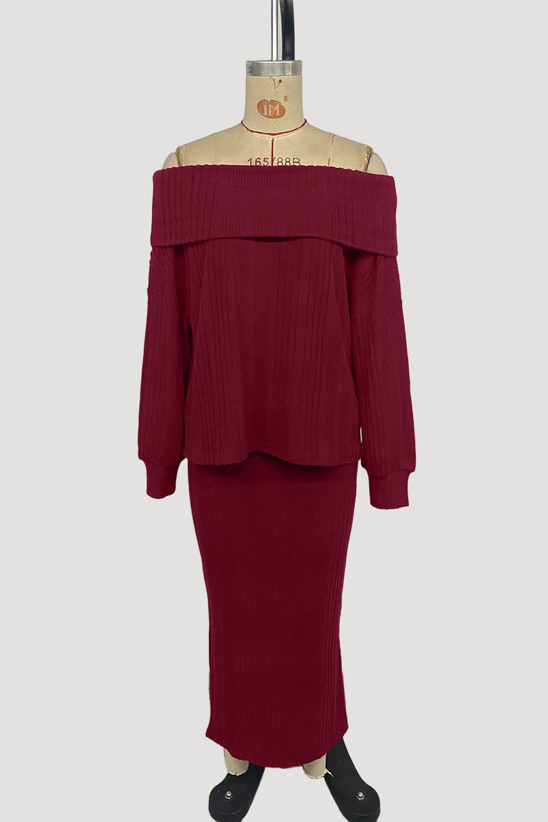 Off-Shoulder Knit Skirt Set