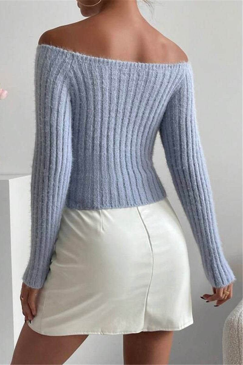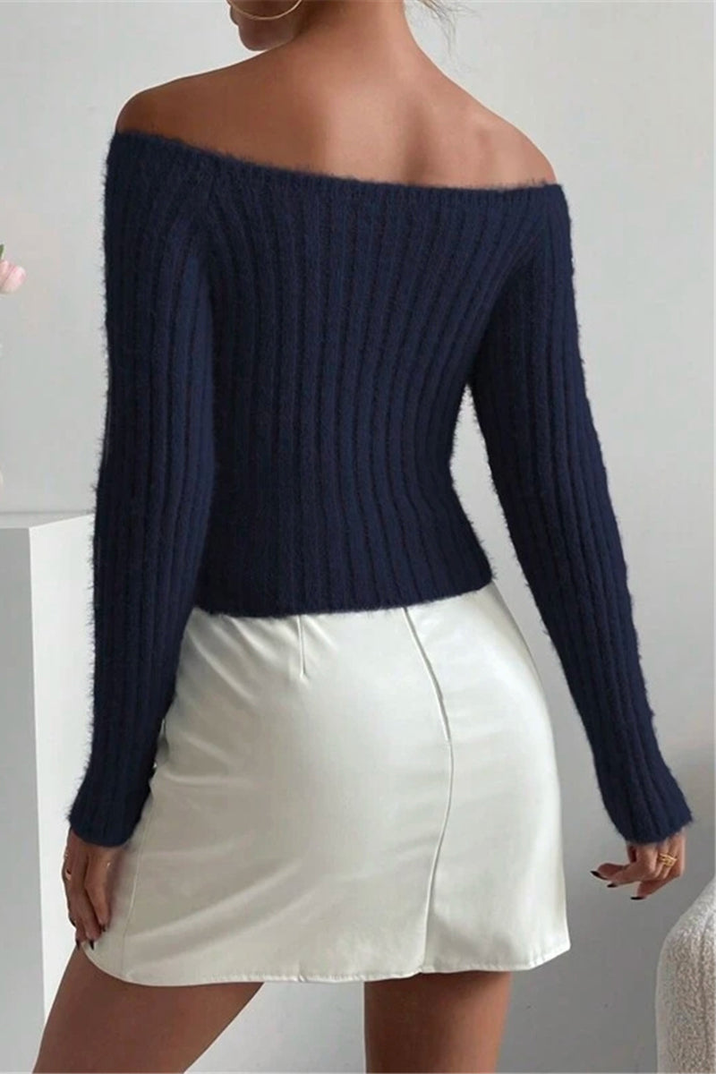 Your new favorite sweater features an off-shoulder design with a cozy ribbed texture. Perfect for casual outings and elegant evenings alike.