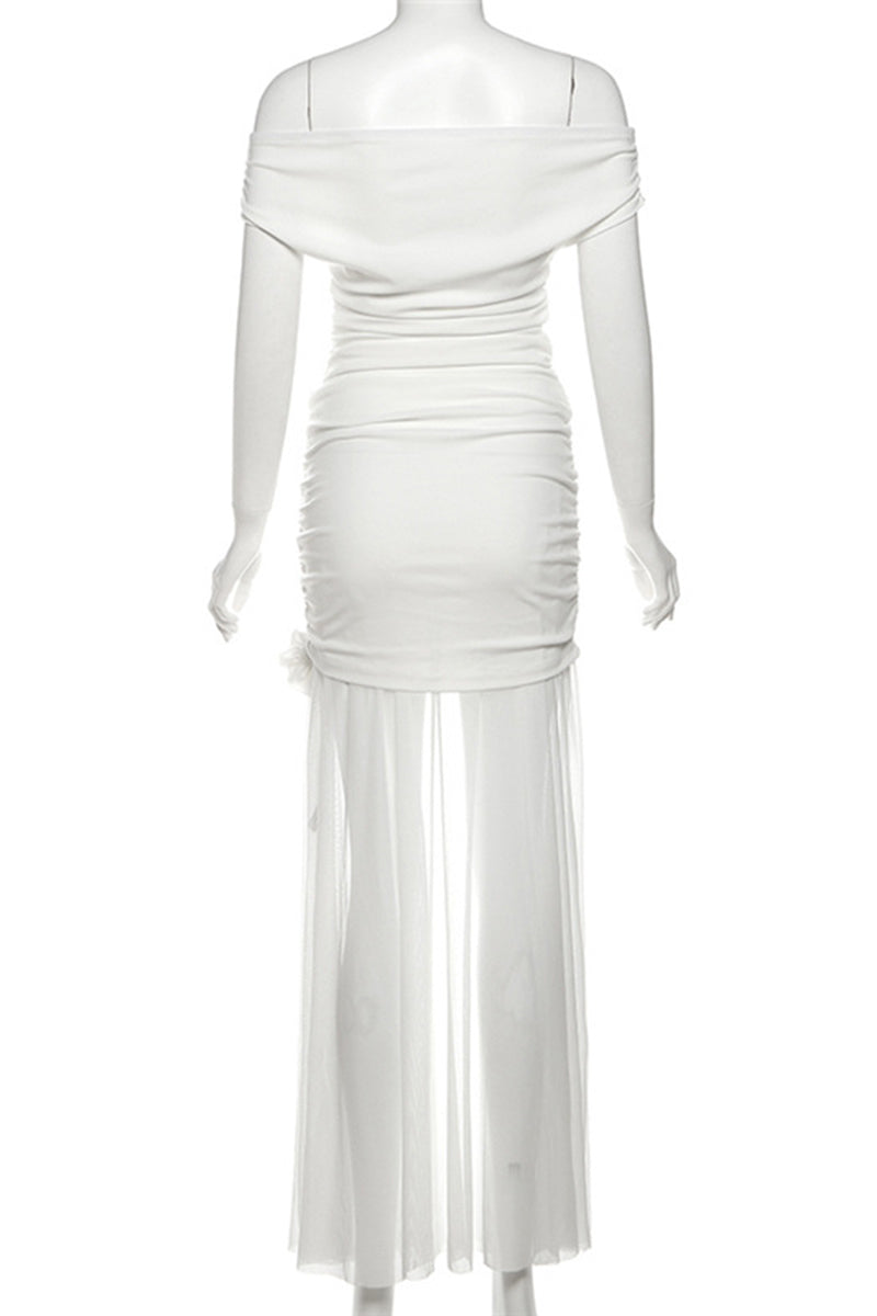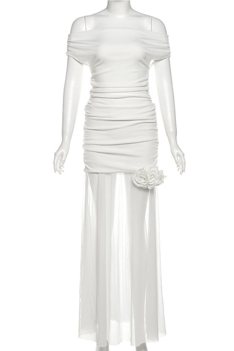Your new casual dress features an off-shoulder design with elegant ruching. Perfectly adapts to any occasion, adding charm to your look effortlessly.