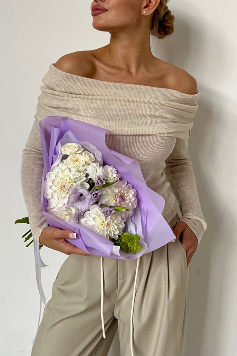 Your new elegant sweater boasts an off-the-shoulder design and timeless appeal. Perfect for casual outings or more dressy events.