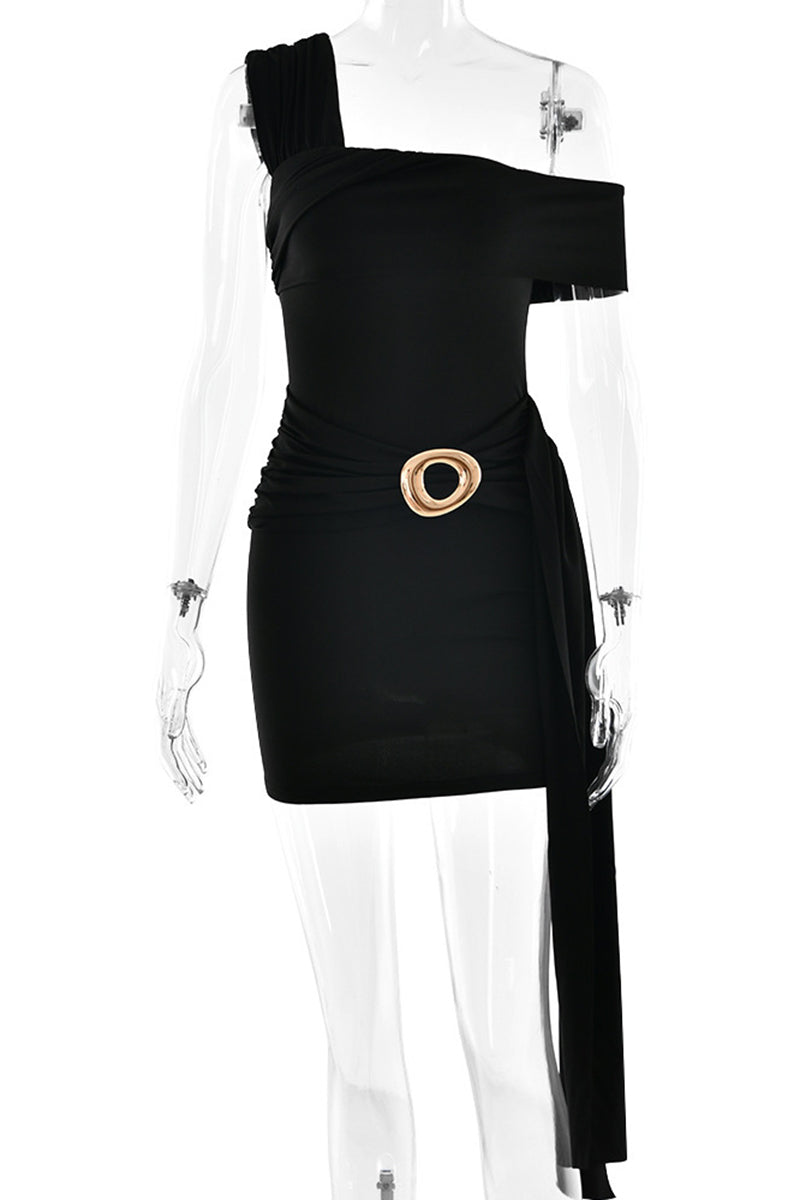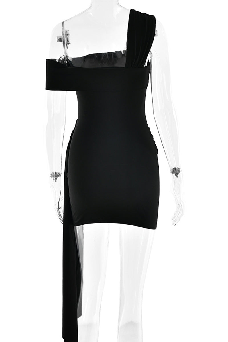 Your new favorite dress features a chic one-shoulder cut with an elegant draped design. Perfect for stylish daytime outings and effortlessly transitions to evening events.