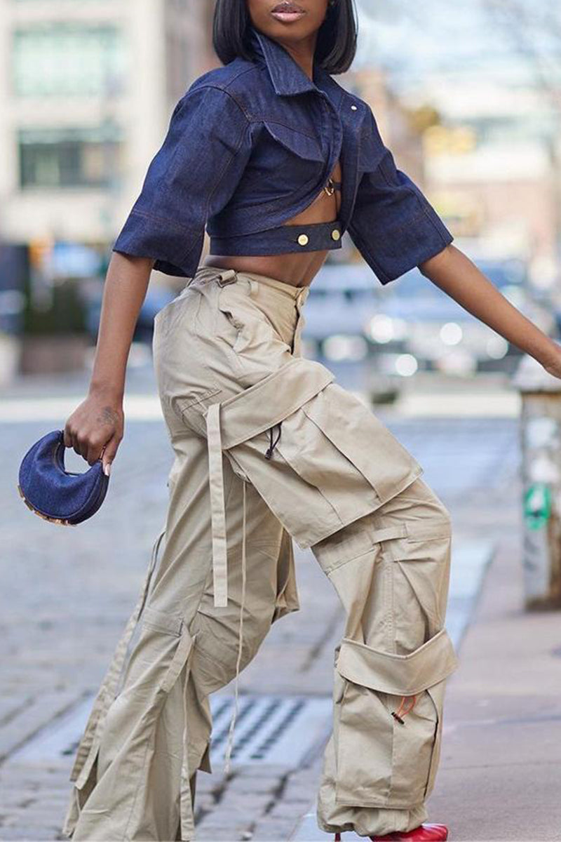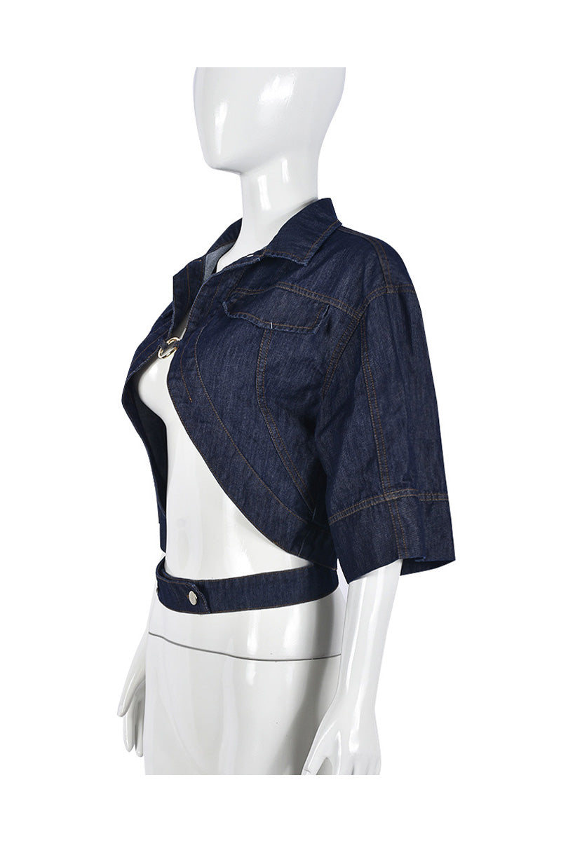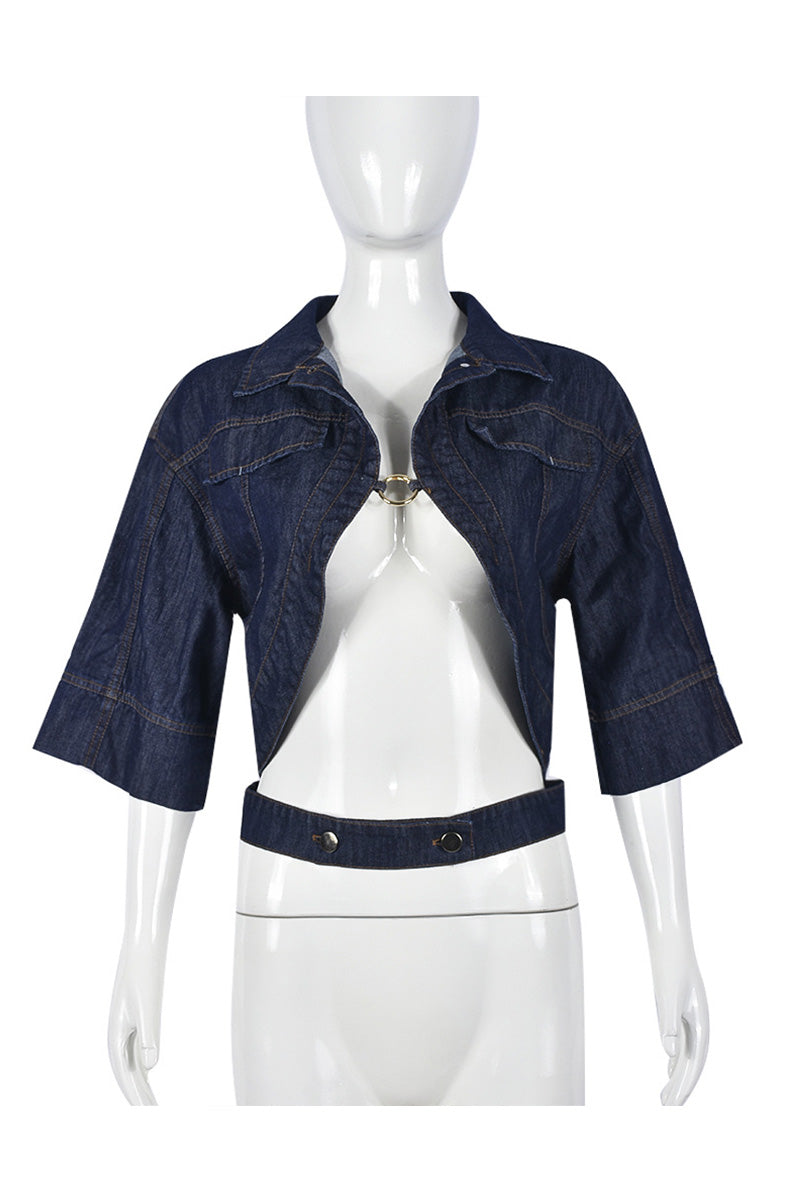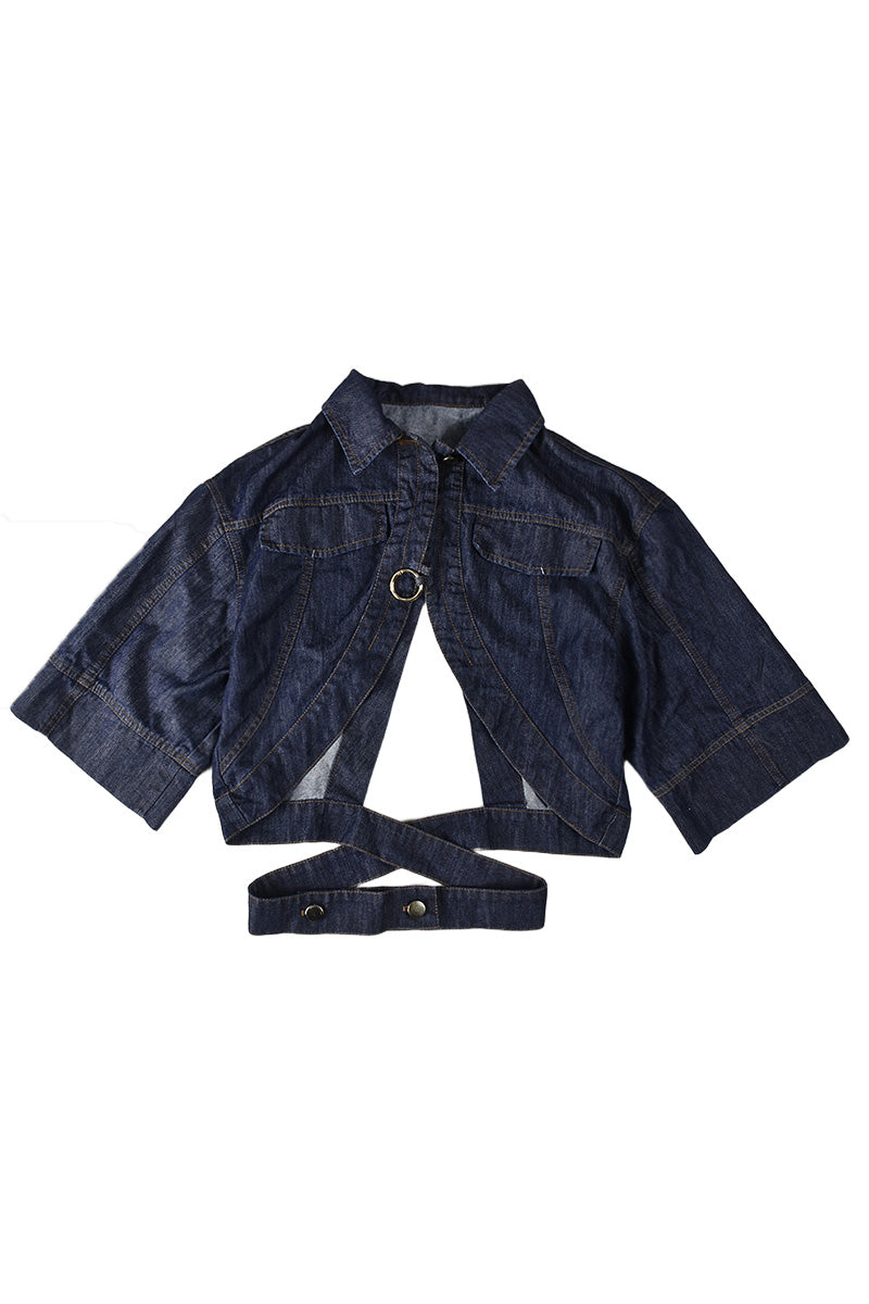 Open-Front Denim Jacket with Ring Detail