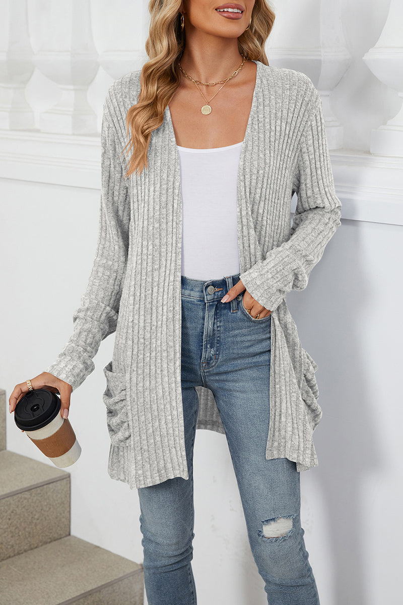 Open-Front Ribbed Cardigan