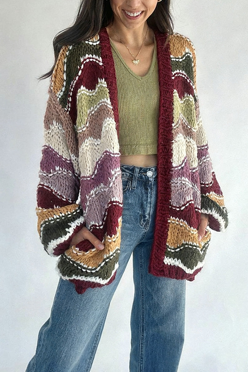 Your new statement piece features a cozy oversized fit and bold chevron pattern. Perfect for adding flair to any casual ensemble, transitioning seamlessly through seasons.