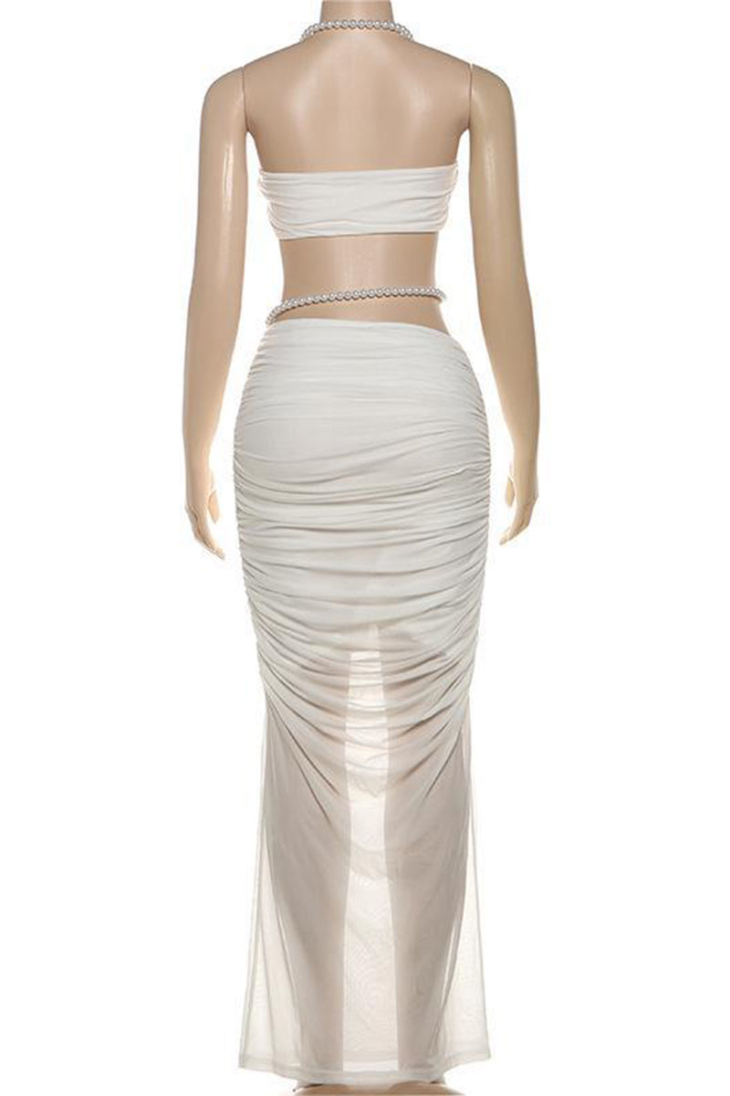 Your new chic skirt set features delicate pearl embellishments for an elegant look. Perfect for dressing up for parties and special occasions.