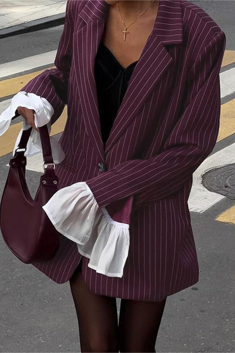 Pinstripe Flared Cuff Blazer