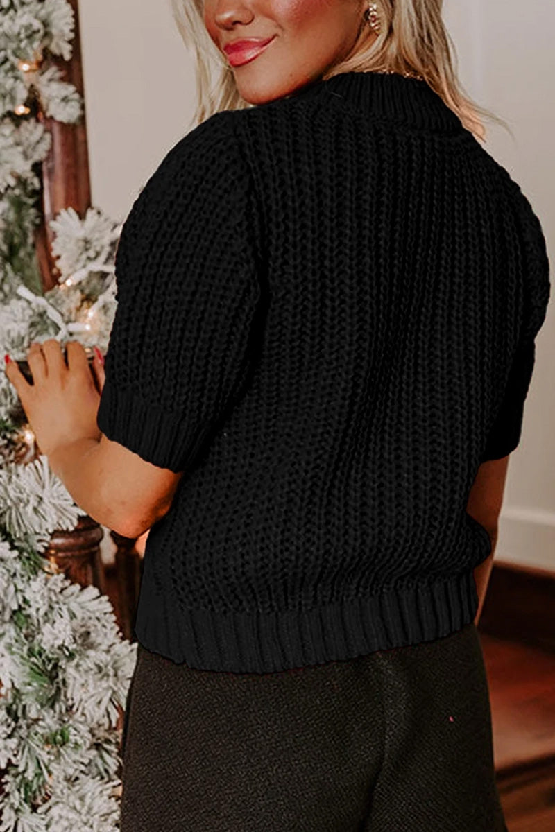 Your new cozy sweater features charming puff sleeves and a playful lace-up detail. Effortlessly adds a festive touch to your holiday look.