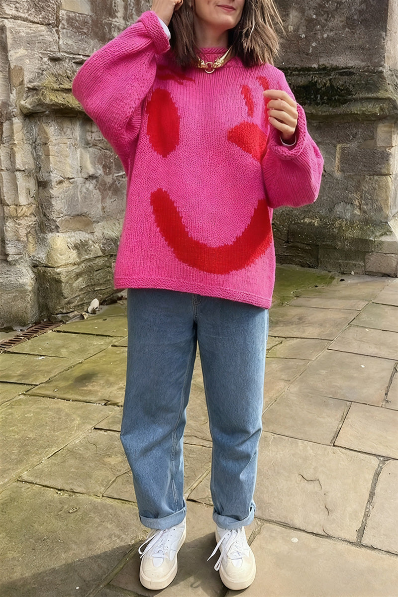 Your new go-to sweater showcases a playful, artistic design with charming details. Perfect for adding a fun twist to your everyday wardrobe, easily styled for a casual outing or laid-back gathering.