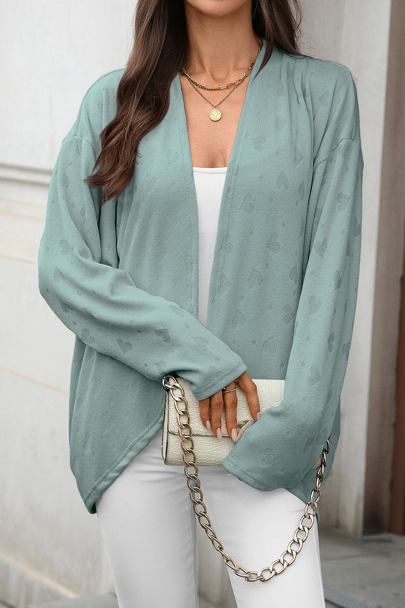 Your new go-to cardigan showcases an open-front design and relaxed drape. Perfect for adding effortless style to any casual or semi-formal look.