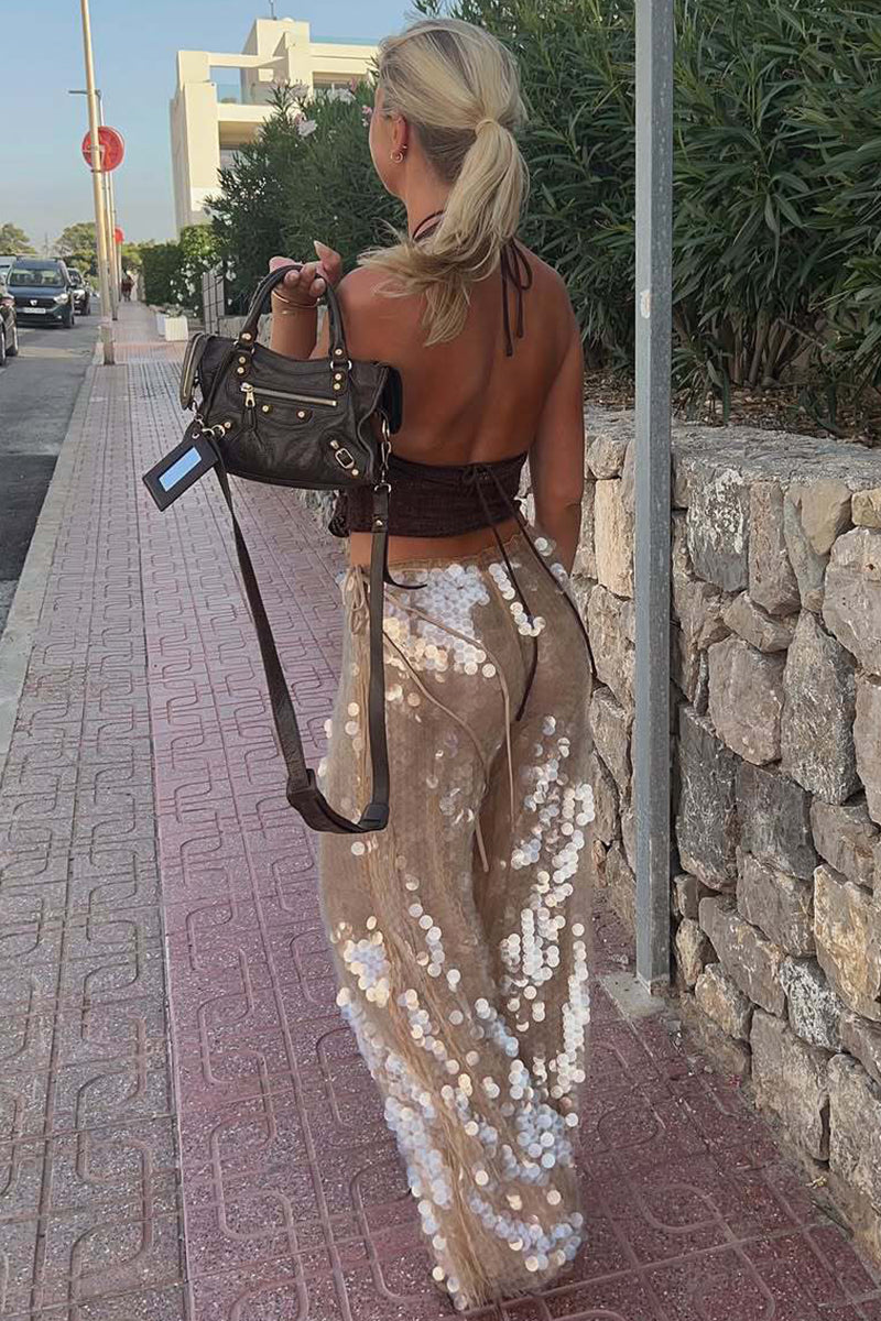 Your new go-to pants feature a glamorous sequin design and relaxed fit. Effortlessly elevates any look, perfect for stylish days and nights out.