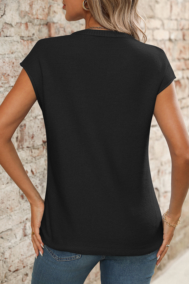 Your new knit sweater vest features a V-neck and relaxed fit. Great for layering or styling solo on warm days.