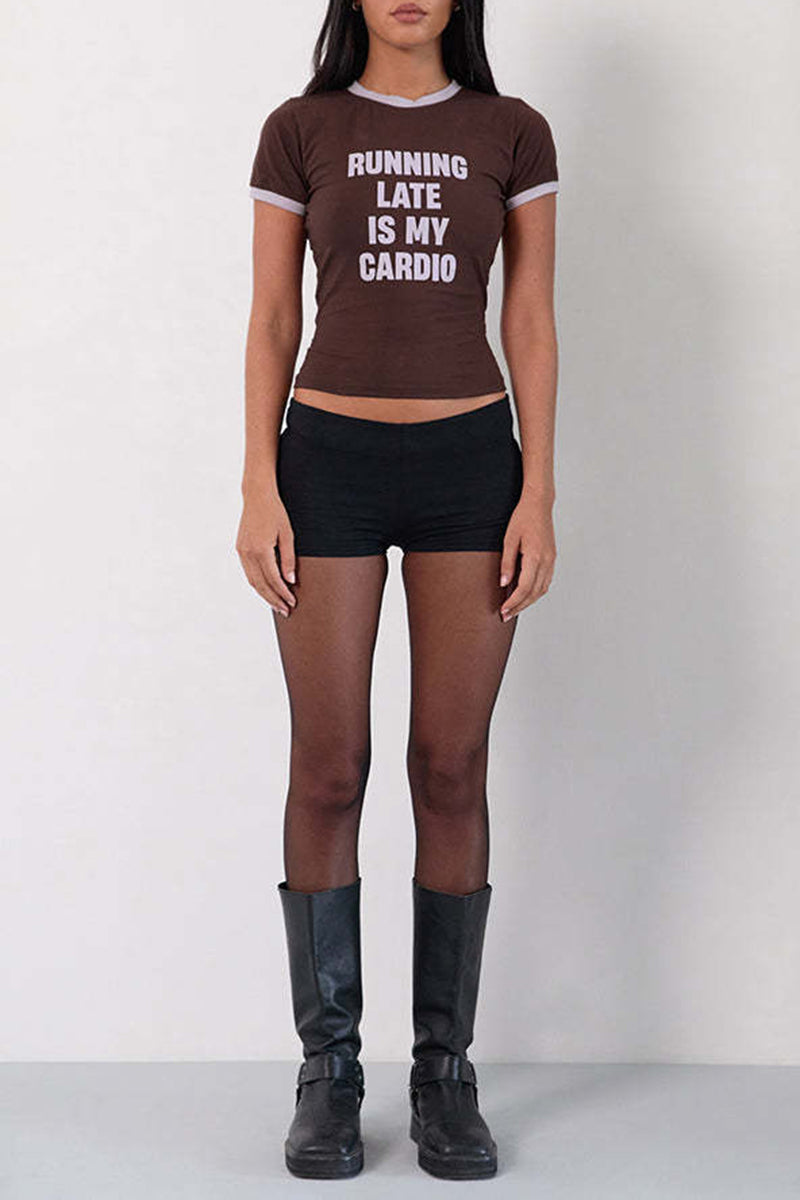 Your new go-to tee features a fun and quirky message. Perfect for casual days and adds a touch of humor to any outfit.