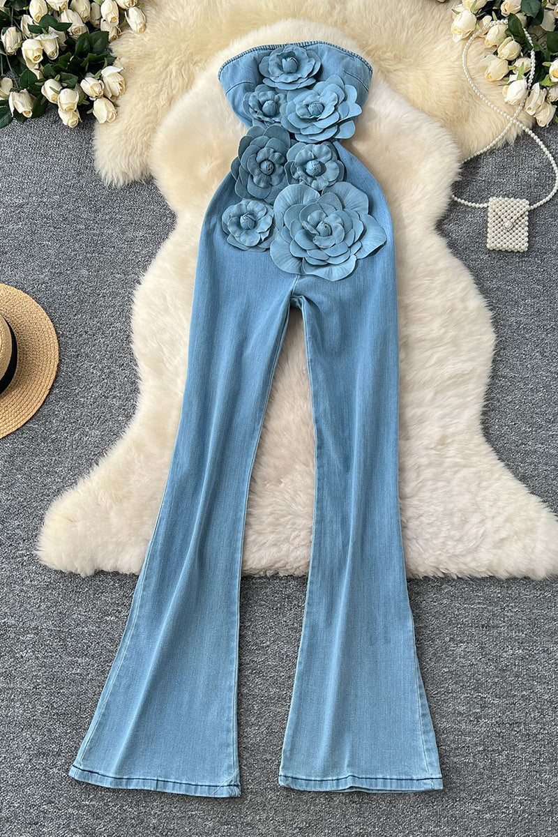 Your new statement piece offers a strapless design with artistic floral appliqués. Perfect for making an impression at events and gatherings alike.
