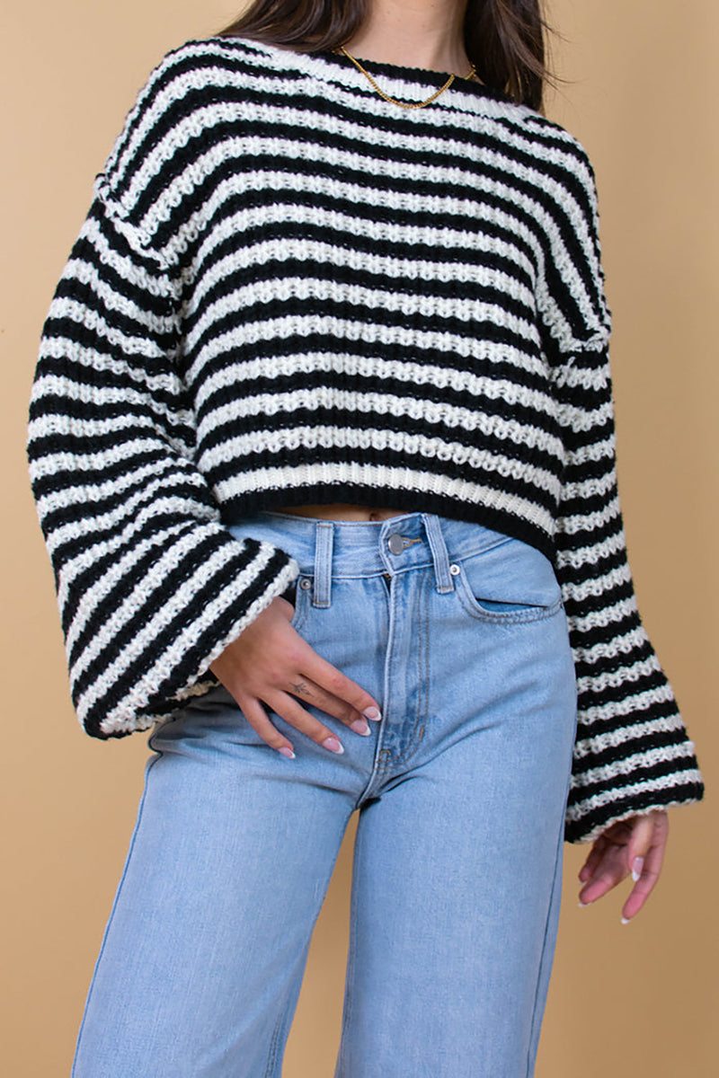 Your new wardrobe staple with a chic striped pattern and relaxed fit. Perfect for layering, this sweater effortlessly complements any casual look.