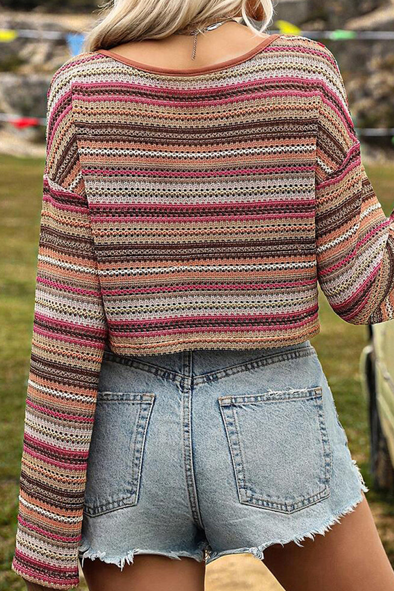 Your new go-to sweater features a playful striped pattern and modern bell sleeves. Effortlessly elevates your look, perfect for layering in any season.