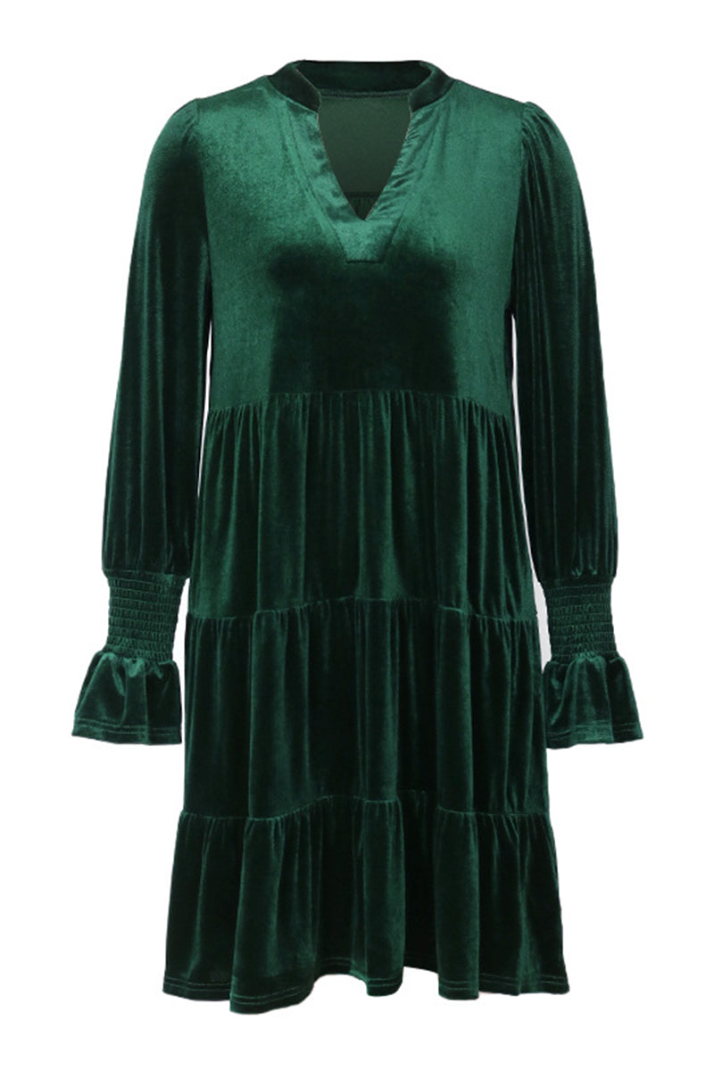 Your new cozy dress boasts a stylish tiered design and elegant V-neckline. Perfect for casual occasions, effortlessly blending style and comfort.