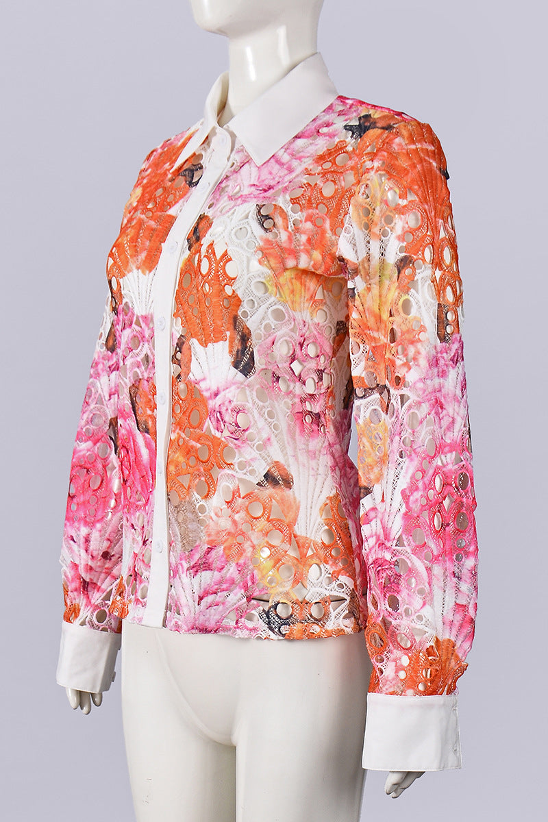 Your new go-to blouse showcases a captivating lace design and tailored fit. Perfectly transitions from casual outings to dressy occasions for versatile wear.