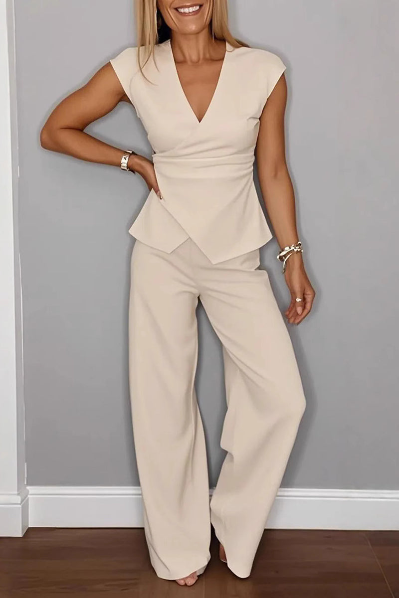 Your new favorite pants set offer a chic wrap-front detail for stylish flair. Perfect for day-to-night transitions, ideal for versatile casual outings.