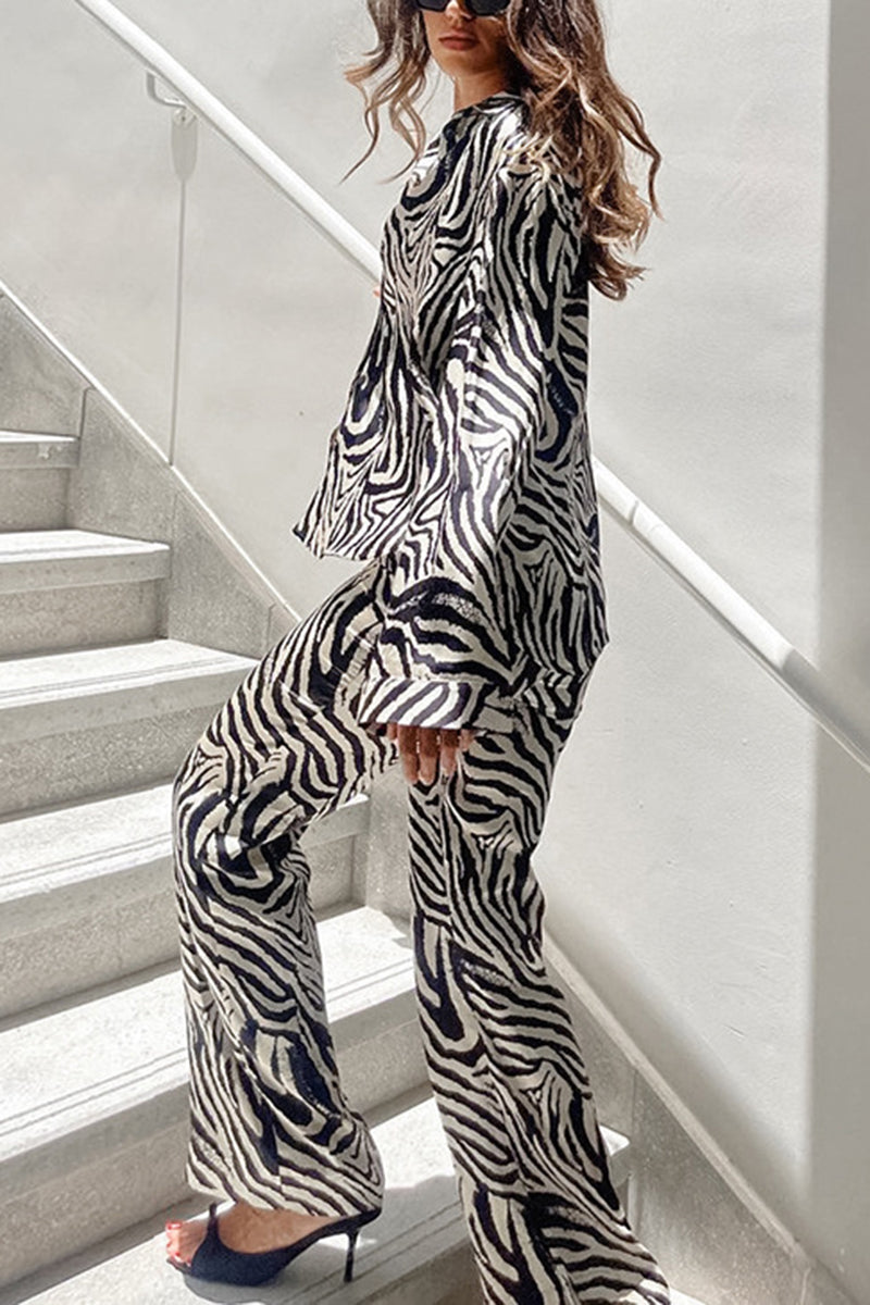 Your new statement set boasts a bold print with a relaxed fit. Perfect for making an entrance at any event, day or night.